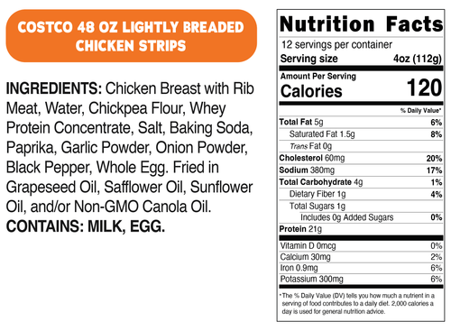 COSTCO 48 OZ LIGHTLY BREADED CHICKEN STRIPS